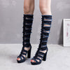 Cutout Denim Boots